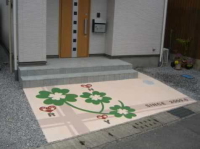 通常の滑り止め施工にはない色や模様で表現できるので、広告や看板としての利用価値もあり、個性ある素敵なエントランスに変身します。