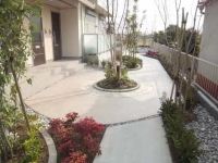 特殊樹脂入りモルタル『スレム』を使い、コンクリートやアスファルトでは物足りない空間を、建物の外観に合わせて、カラーバリエーション豊かに新しい空間を作り出すことができ、古くなったアスファルトや汚れたコンクリートなどの足元を手軽に低コストでリフォーム出来る、おしゃれな滑り止めコート。