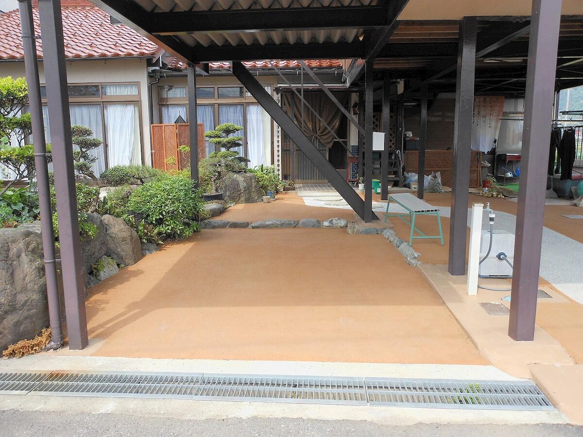 カラー舗装にはできなかった土ならではの優しい風合い