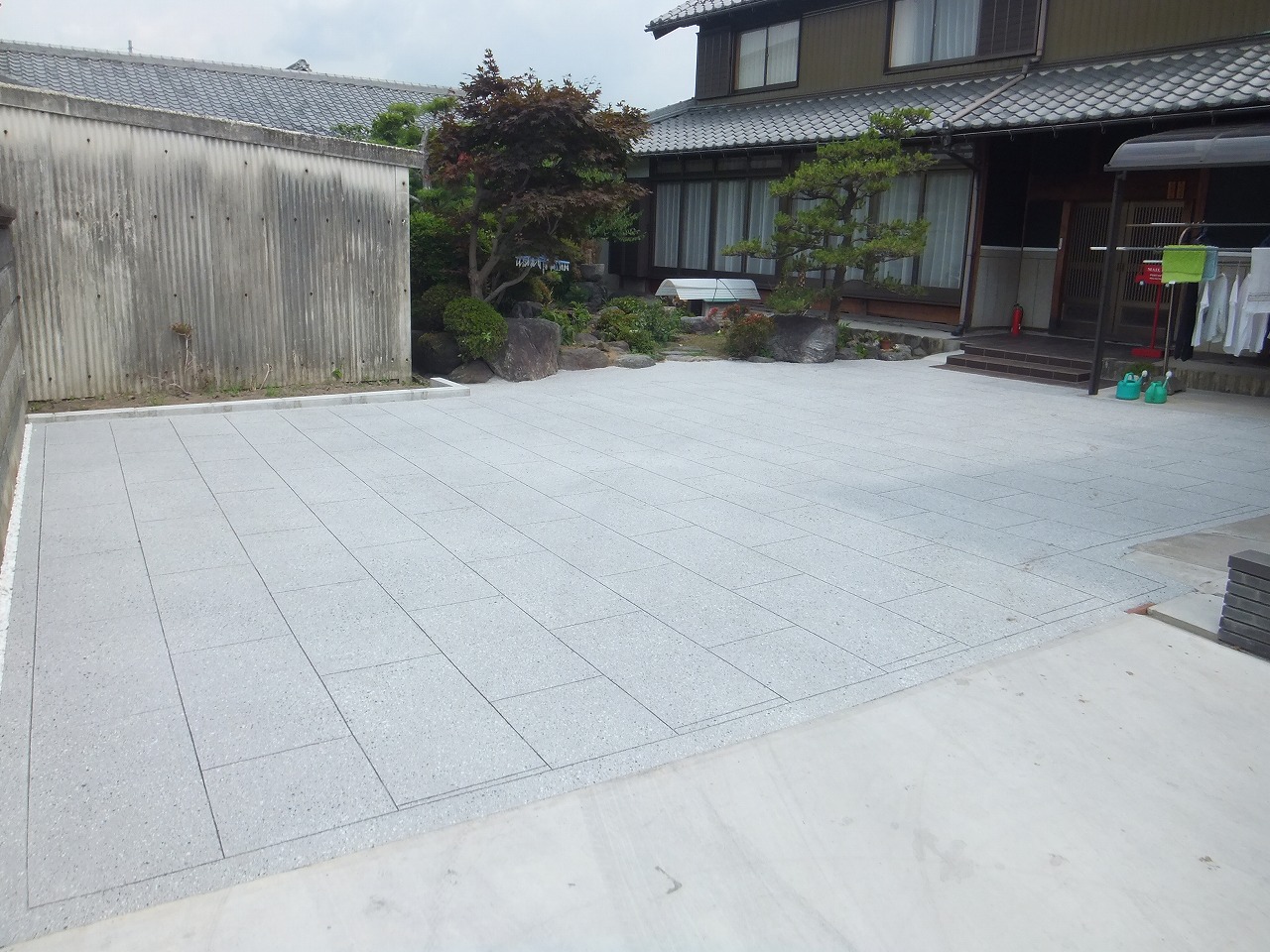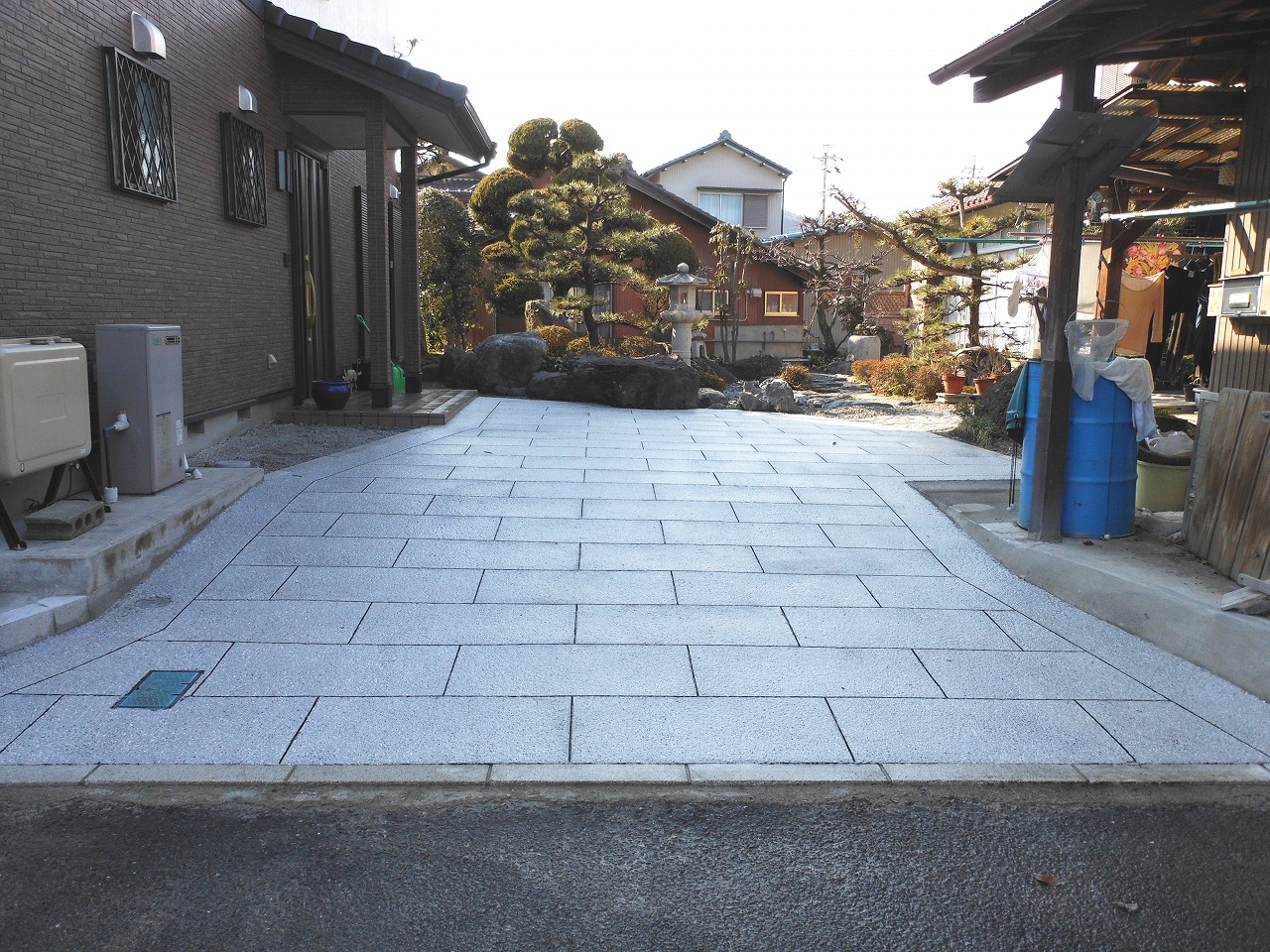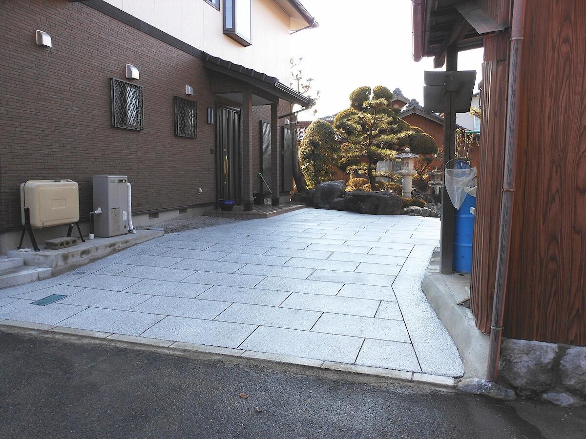 さらに、カッター目地を石畳調に施すことにより、重厚感のある素敵な空間が出来上がります。