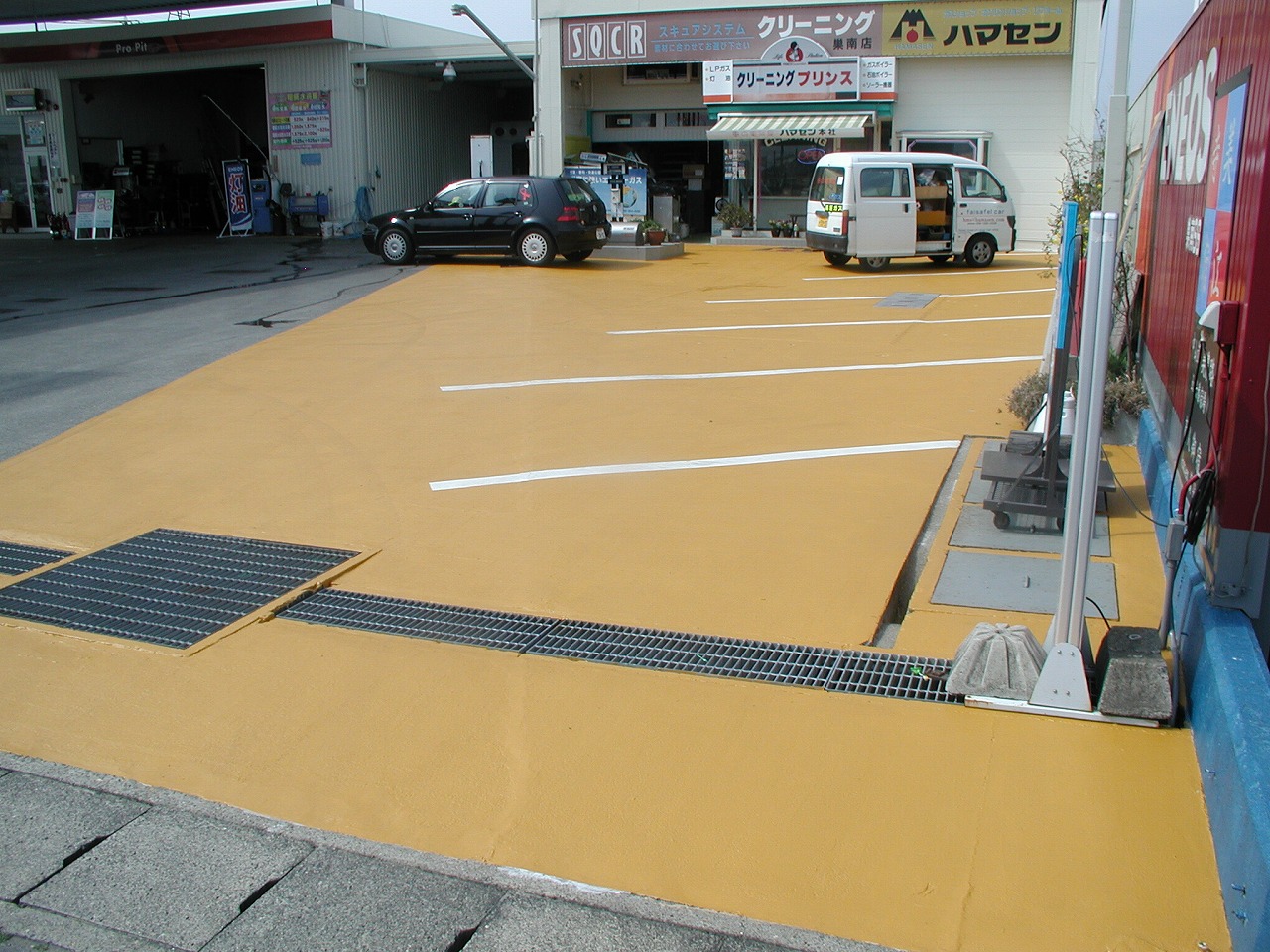 優れた接着力を持つため、アスファルトやコンクリートに限らず、タイルや鉄にも多彩なカラーで塗布することが可能です。